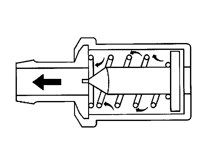 The primary control is through the Positive Crankcase Ventilation (PCV) valve which meters the flow at a rate depending on inlet vacuum. To maintain idle quality, the PCV valve restricts the flow when inlet vacuum is high. It abnormal operating conditions arise, the system is designed to allow excessive amounts of blow by gases to back flow through the crankcase vent into the throttle body to be consumed by normal combustion.