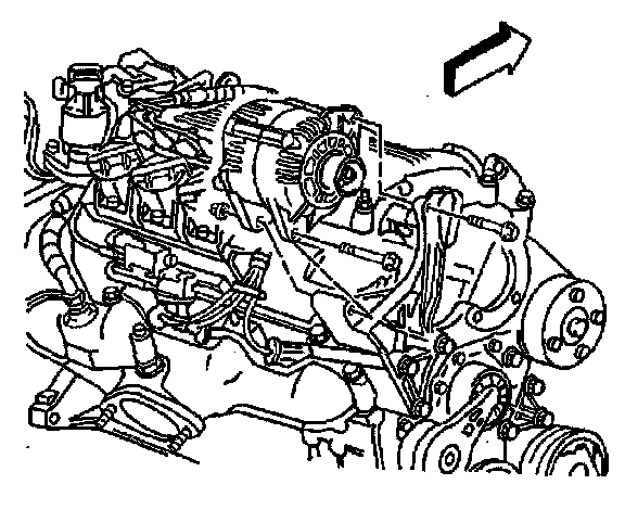 6. Loosen the generator front and rear braces at the engine intake manifold.