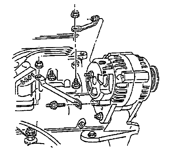 7. Tighten the generator front and rear brace nuts at the engine intake manifold.