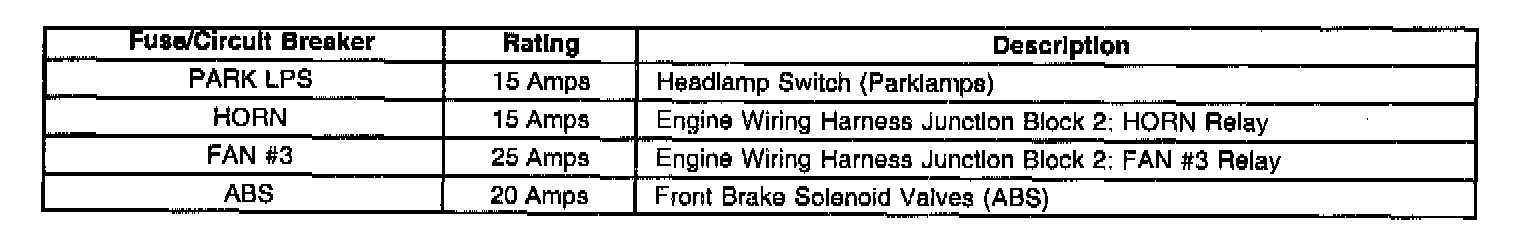 Engine Wiring Harness Junction Block 2 Maxifuse (R) Application Table: