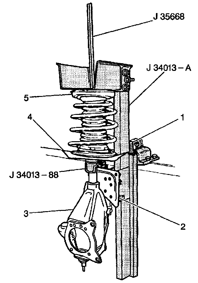 2. Mount the knuckle/strut in the J 34013-B and the J 34013-88.