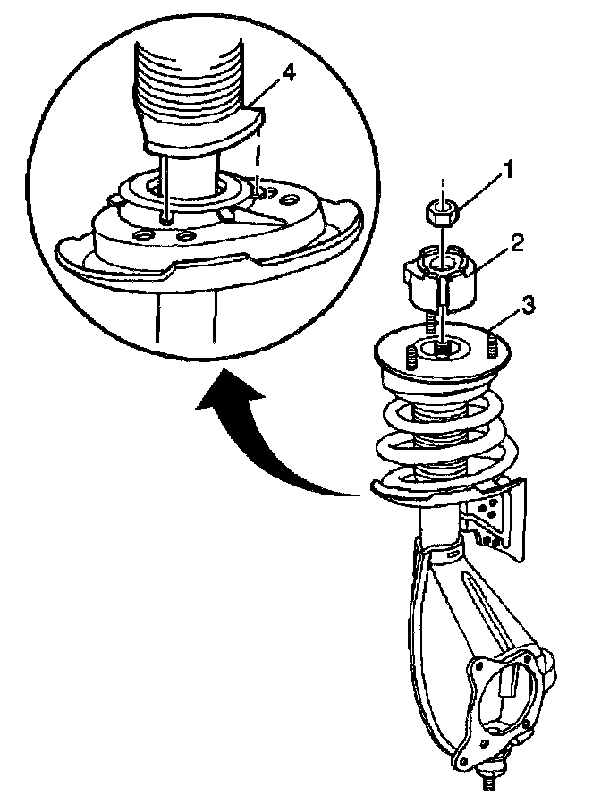 8. Pull the strut shaft through the strut retainer (3).