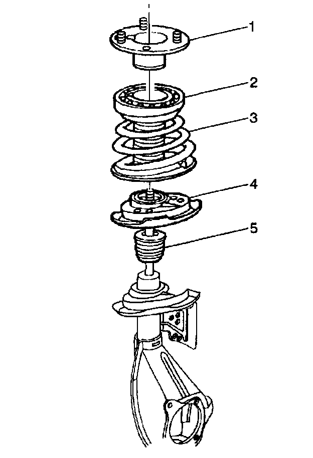 1. Install the strut bumper (5). Install the front spring seat (4).