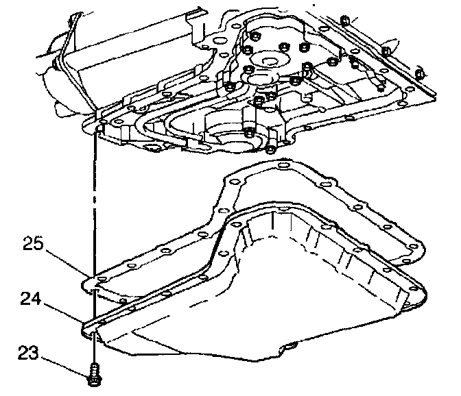 4. Remove the oil pan bolts (23) from the sides.