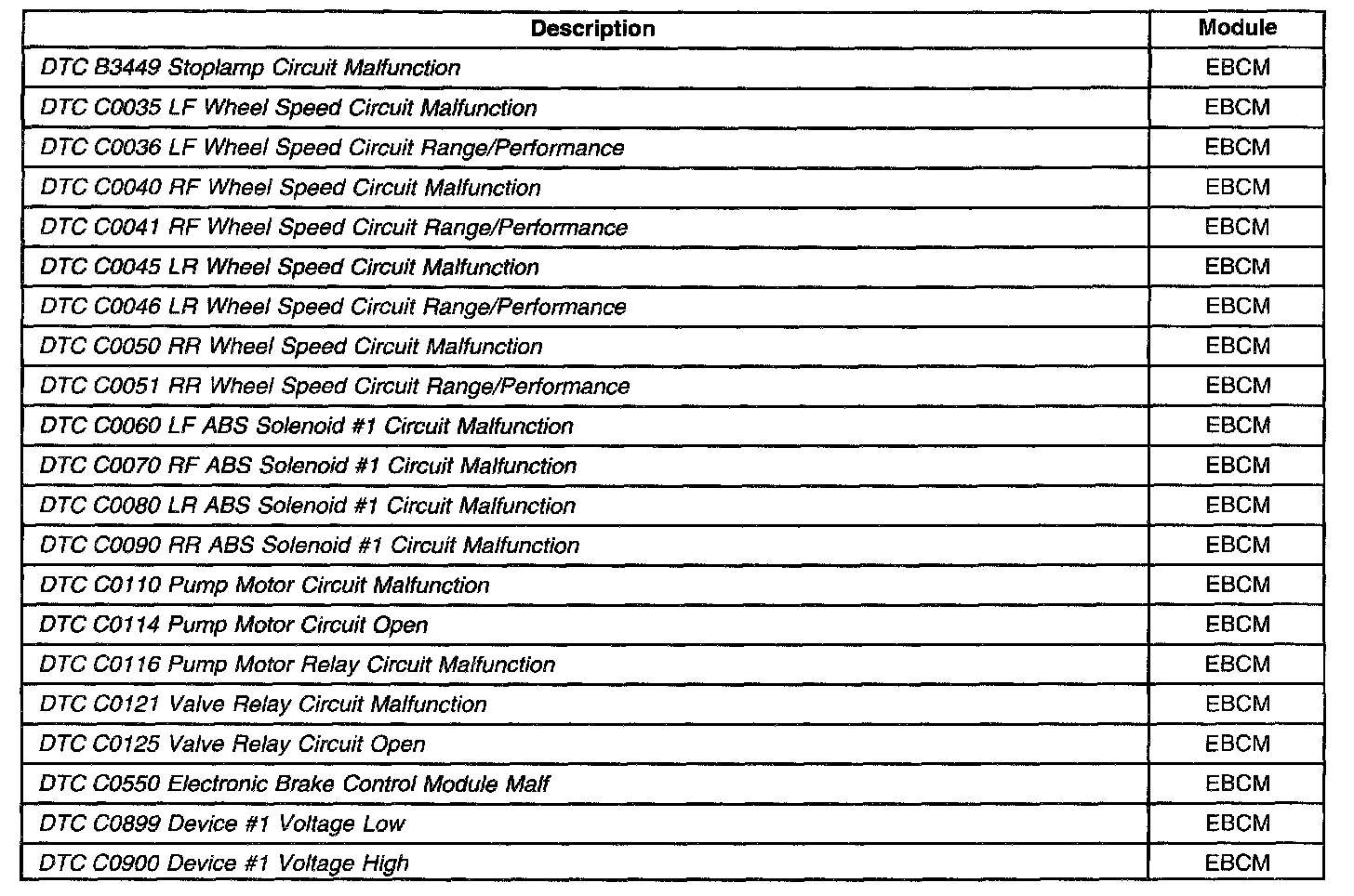 Diagnostic Trouble Code Descriptions