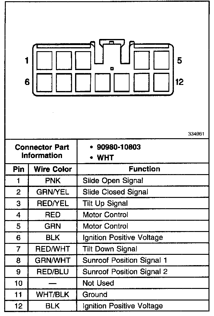 Sunroof / Moonroof Module: Diagrams