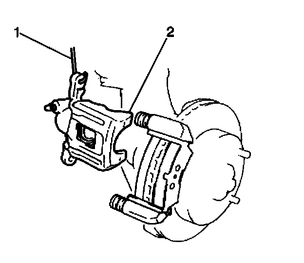 3. Remove the brake caliper housing (2) and the brake caliper bracket.