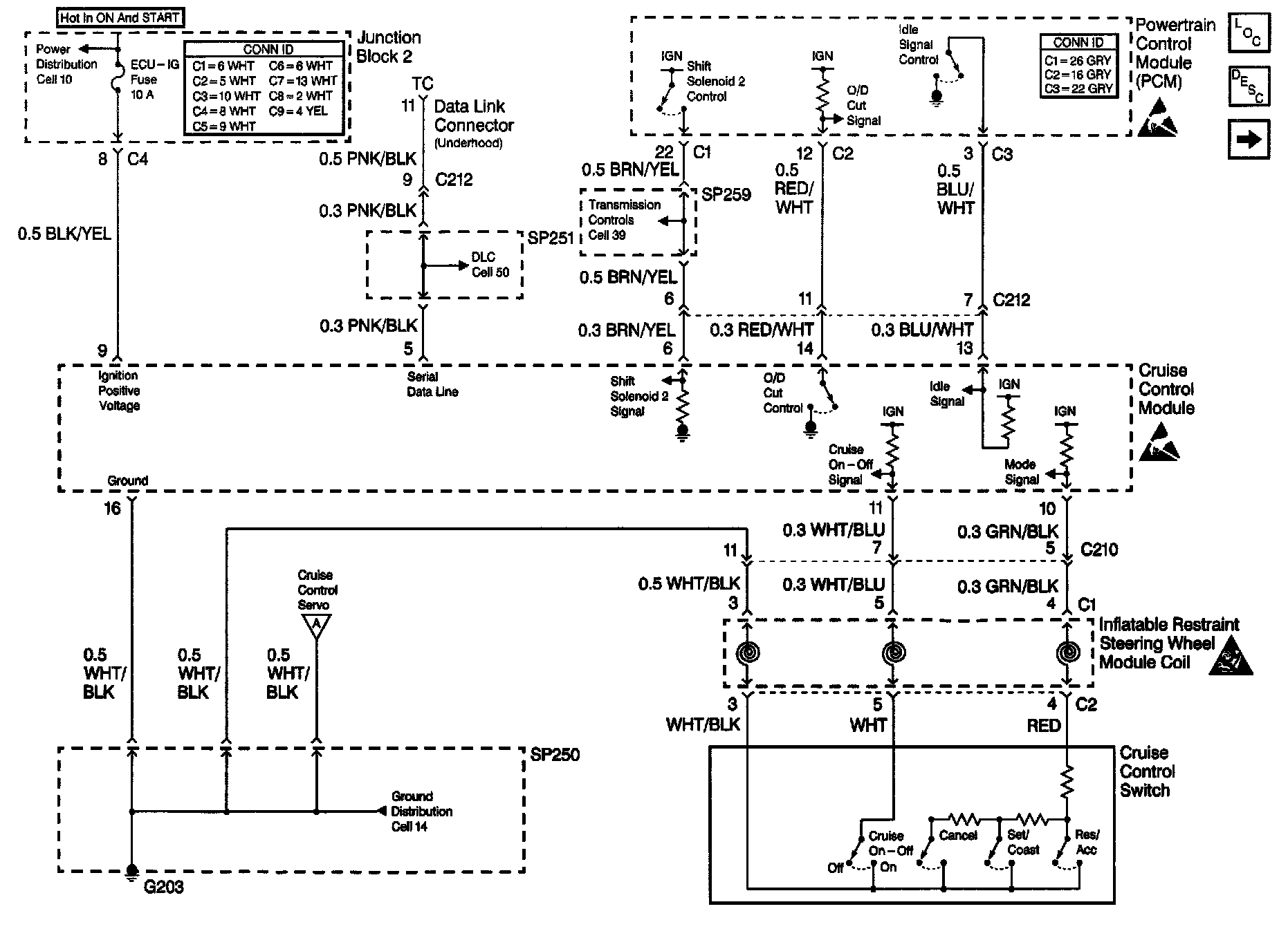 Cruise Control Schematics: Cruise Control Switch, Cruise Control Module, And PCM: