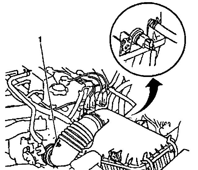 6. Disconnect the air cleaner hose from the throttle body (1).