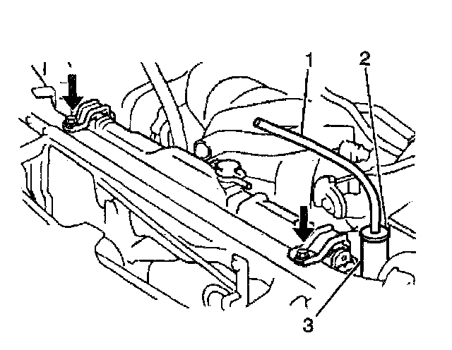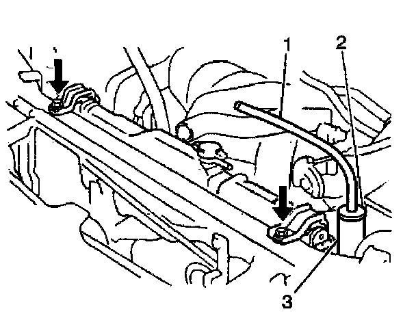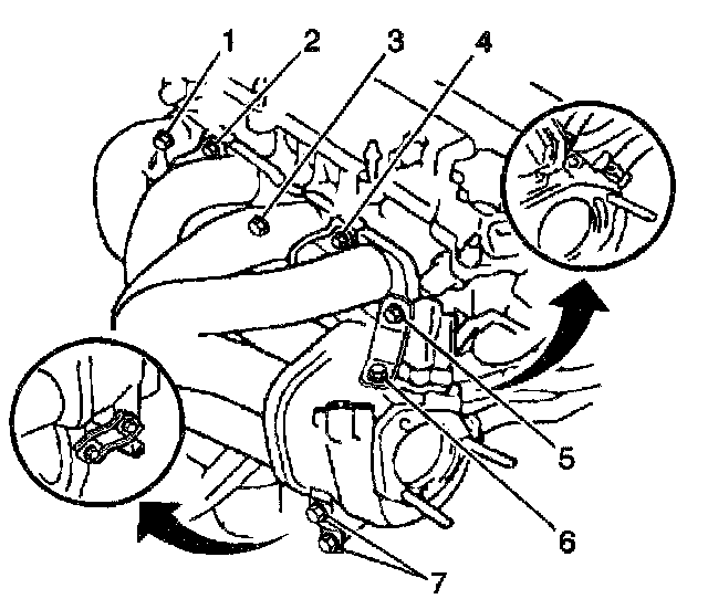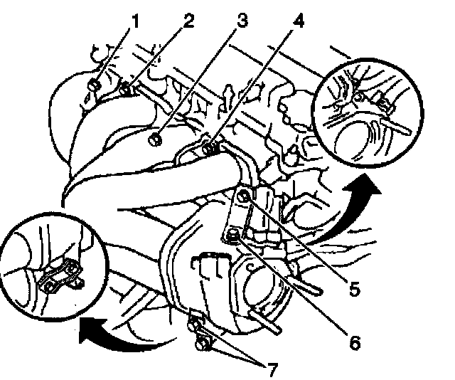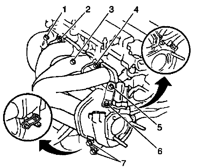 7. Install the intake manifold support bracket. Secure the bracket using two bolts (7).