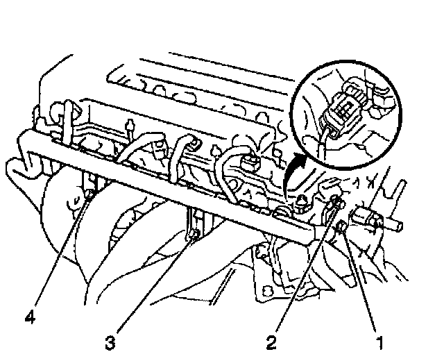 8. Install the fuel injector wiring harness. Secure the harness using three bolts (3, 4).