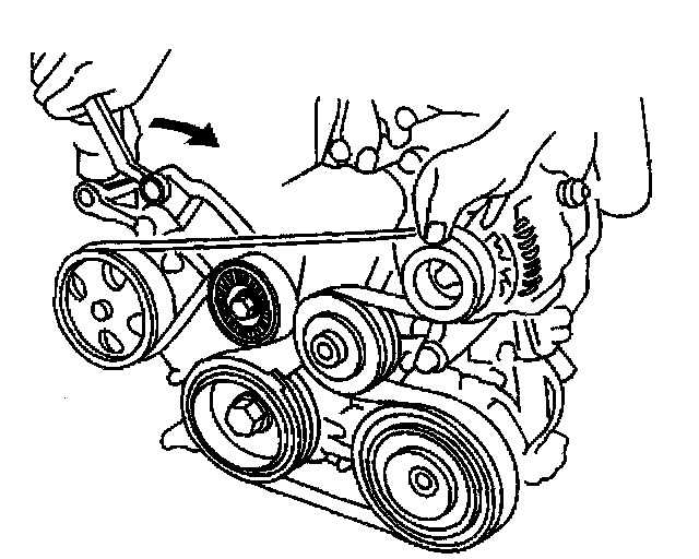 6. Install the drive belt tensioner. Secure the tensioner using one bolt and one nut.