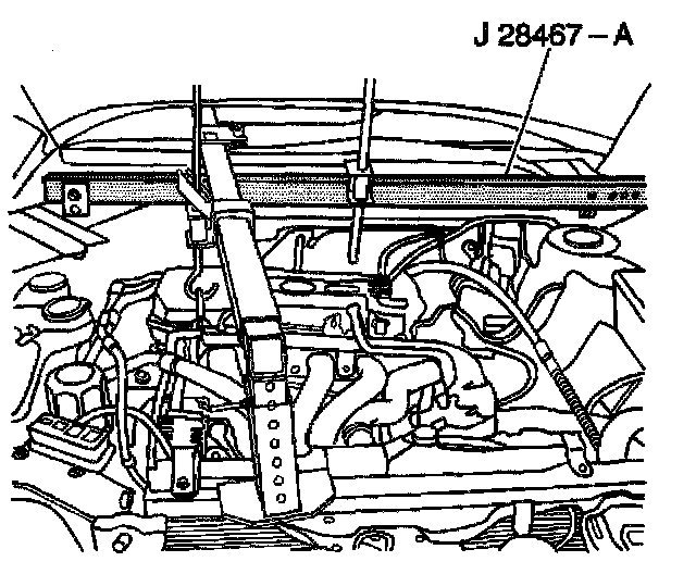 27. Remove the crankshaft pulley retaining bolt using J 8614-01 to prevent crankshaft rotation when loosening the bolt.