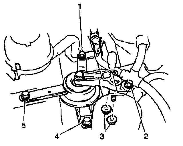 - Tighten the right side engine mount bolts (1, 2, 4) to 54 Nm (40 ft. lbs.).