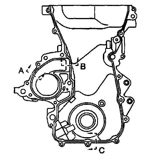 1. Apply a continuous bead of GM P/N 12346240 or an equivalent to the timing chain cover mating surface.
