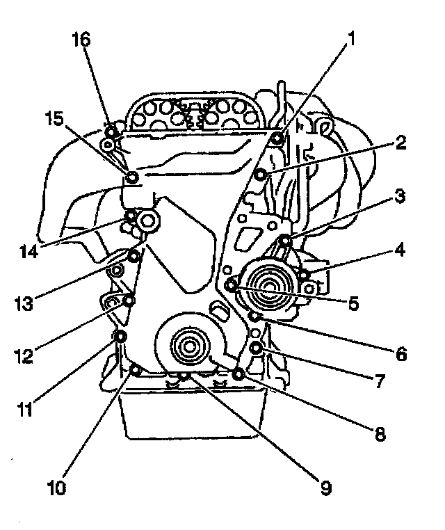 - Tighten the timing chain cover nut and bolts (12 mm head) to 18 Nm (14 ft. lbs.).