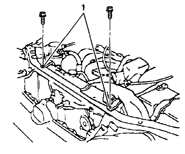 4. Install the radiator support brackets. Secure each bracket with one bolt (1).