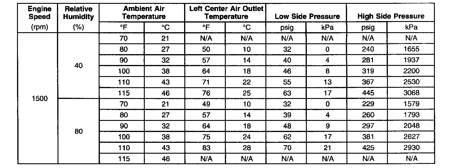 A/C Performance Table:
