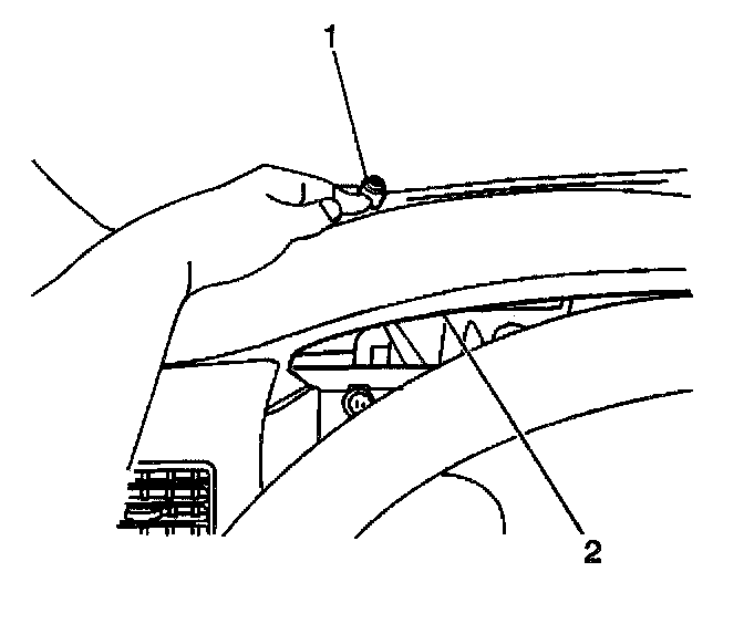 1. Install the ambient light sensor (1) to the IP assembly (2). Ensure that the retaining tabs are fully engaged.