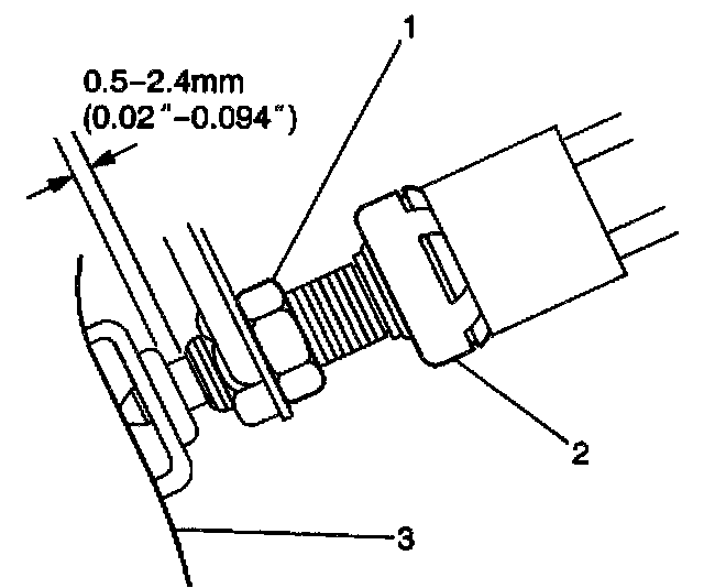 13. Ensure the distance between the end of the stoplamp switch plunger and the end of the threaded portion of the stoplamp switch is within 0.5 - 2.4 mm (0.02 - 0.094 inch).
