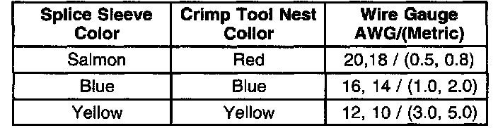 Use crimp and seal splice sleeves to form a one-to-one splice on all types of insulation except tefzel and coaxial to form a one-to-one splice. Use tefzel and coaxial where there is special requirements such as moisture sealing. Follow the instructions below in order to splice copper wire using crimp and seal splice sleeves.TOOLS REQUIRED