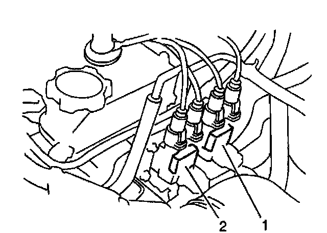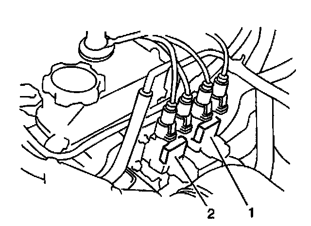 14. Reconnect the electrical connectors at both ignition coils(1,2).