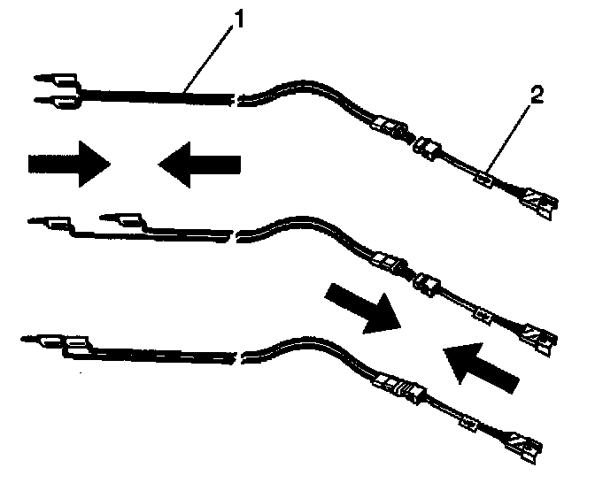 6. Connect the appropriate pigtail adapter (2) to the SIR deployment harness (1).