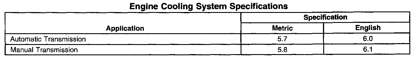 Engine Cooling System Specifications
