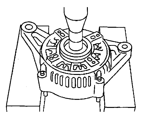 9. Install the rectifier end frame by using a 29 mm socket or other suitable adaptor and a press.