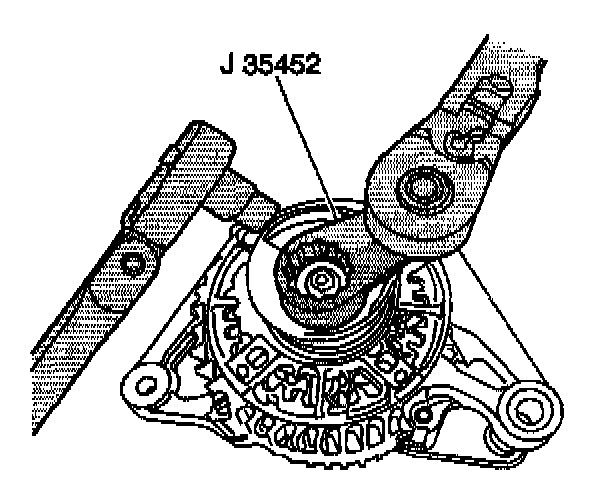 11. Install the pulley and the nut using the J 35452 or the J 39194-B. Tighten the 718 in nut while holding the rotor shaft stationary with the 10 mm socket.