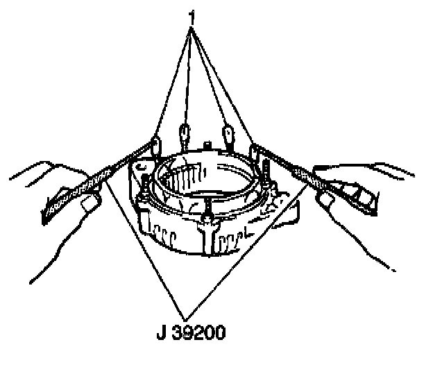 4. Measure the resistance between all stator leads (1) with the J 39200. If the resistance is greater than 5 ohms for any measurement, replace the stator.