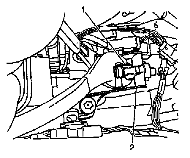 5. Connect the shift select cable (2) to manual selector lever. Secure the manual selector lever (1).