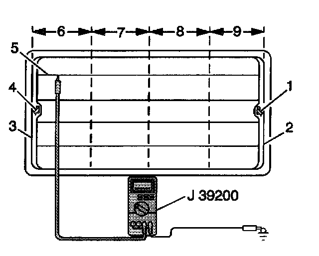 5. If the J 39200 reads a high voltage at both ends of the grid lines, inspect for the following conditions: