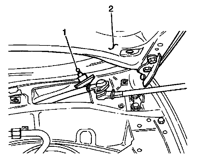 2. Remove the 6 bolts which secure the windshield wiper transmission (1) to the bulkhead (2).