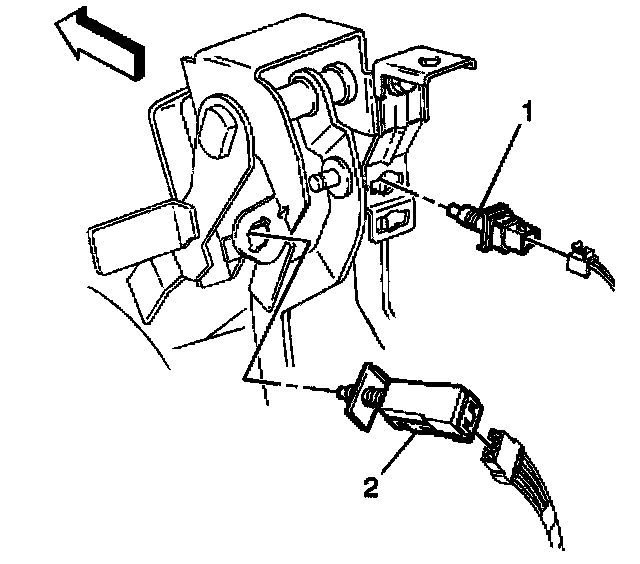 1. With the brake pedal depressed, insert the cruise control release switch (1) into the bracket until the retainer is fully seated.