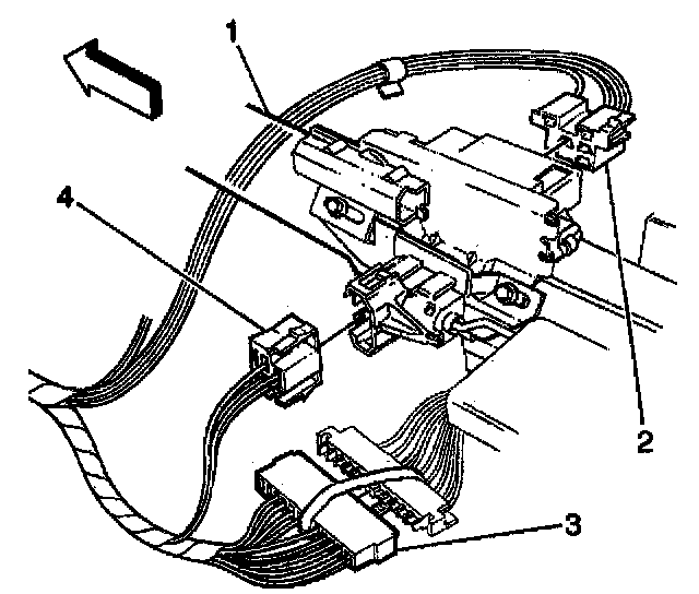 41. Connect the inline headlamp connector (1) to the forward lamp harness.
