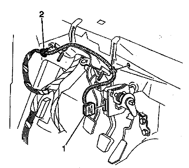 58. Connect the accel/cruise servo cable adjuster electrical connectors (1).