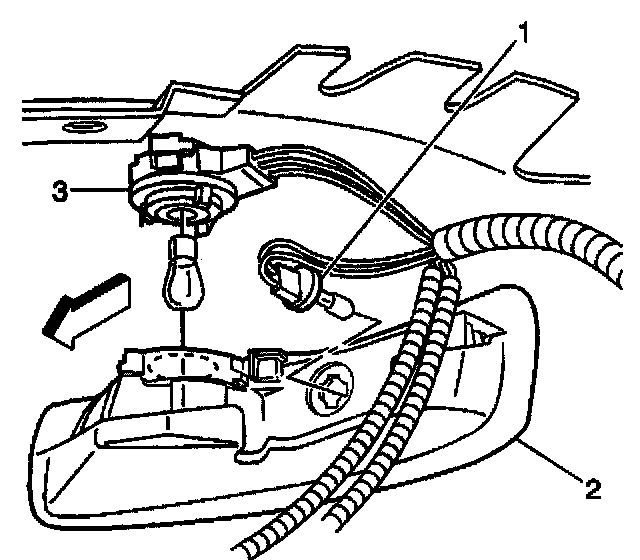 50. Install the park/turn signal (3) and marker (1) connector to the lamp (2).