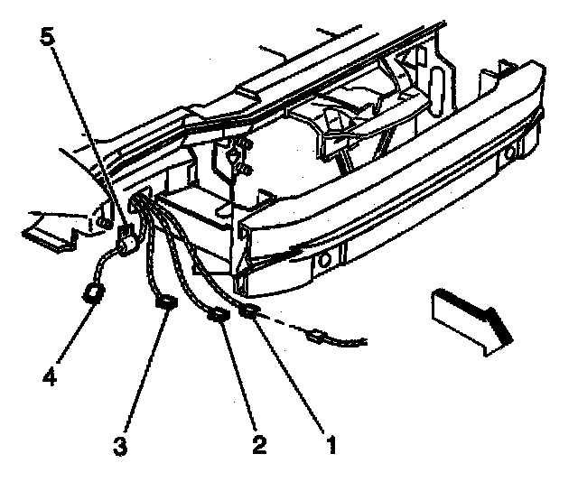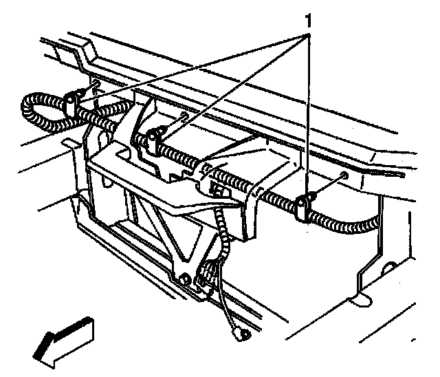 33. Connect the forward lamp wiring harness rosebud clips (1) to the tie bar.