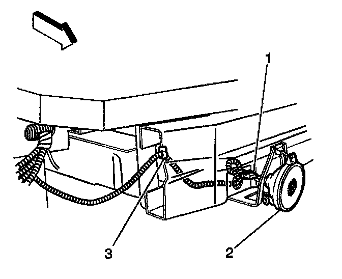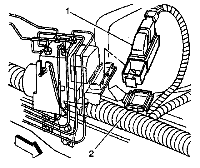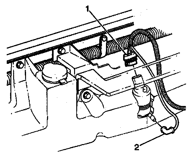 10. Install the wheel speed sensor connector (2) to the mid rail.