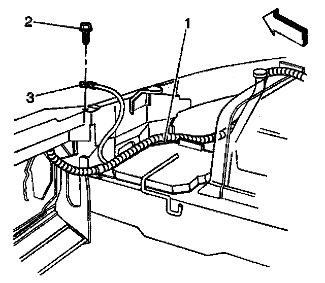 Tighten the right front ground bolt (2) to 10 N.m (89 lb in).