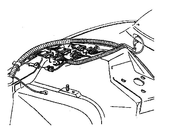 3. Install the harness rosebud clip to the left wheelhouse panel.