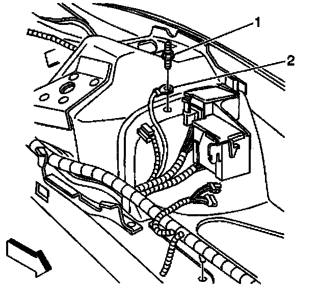 4. Install the forward lamp wiring harness grommet bolt (2).