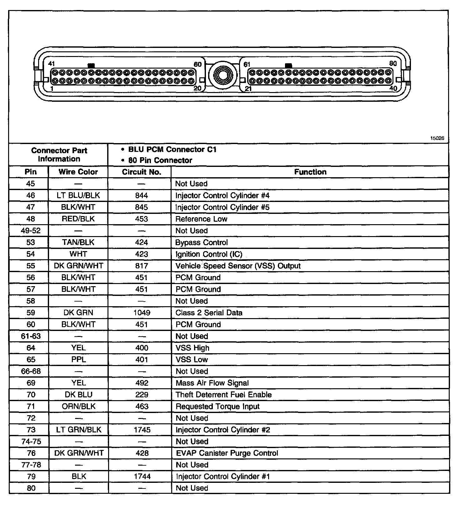 Powertrain Control Module Connector C1 (BLU) End View (Part 2 Of 2):
