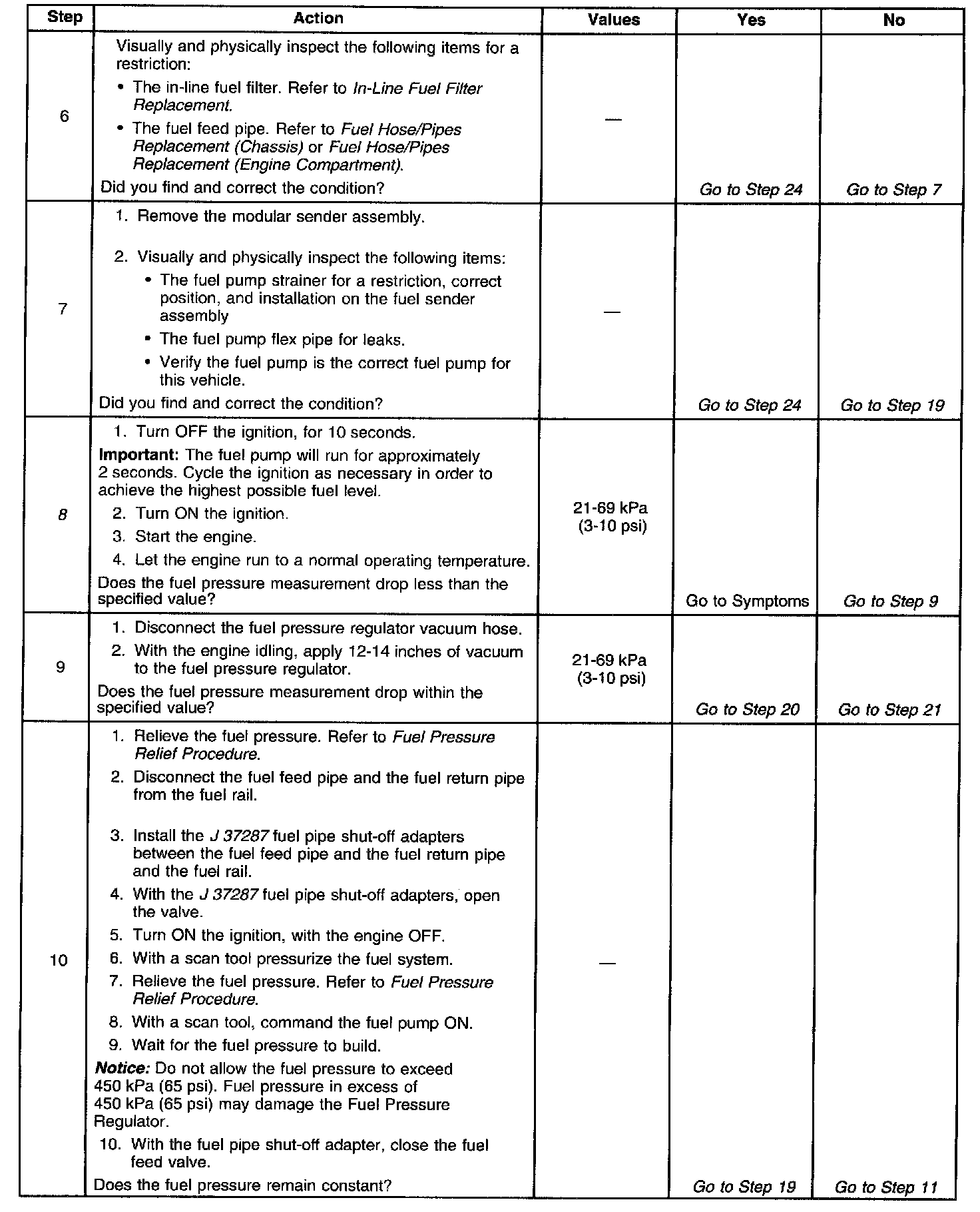 13. This test determines if the high fuel pressure is due to a restricted fuel return pipe or if the high fuel pressure is due to a faulty fuel pressure regulator.