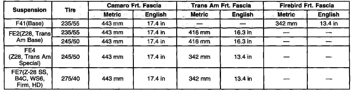 Ride/Trim Height Specifications