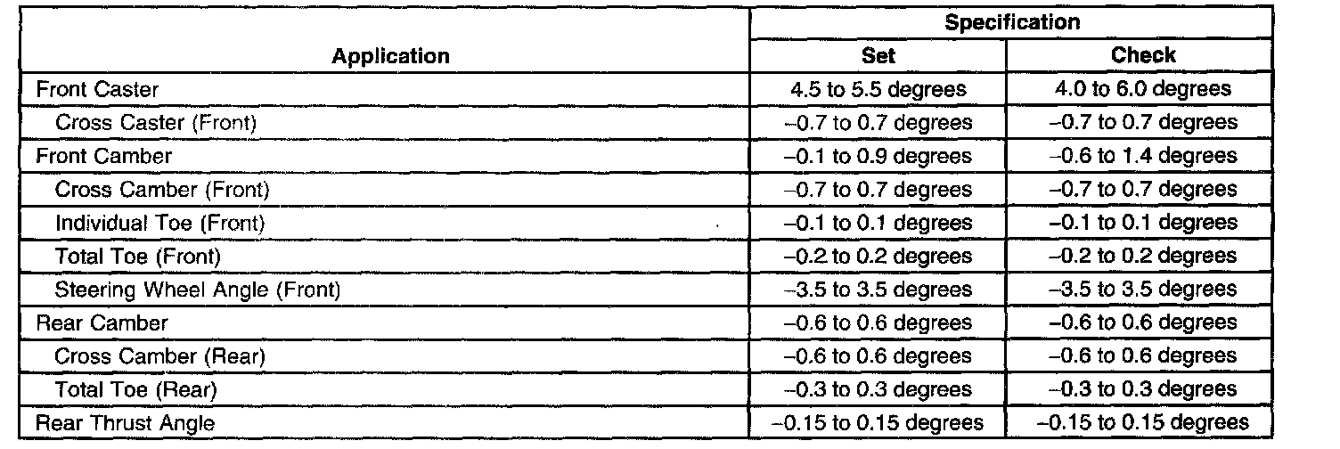 Wheel Alignment Specifications