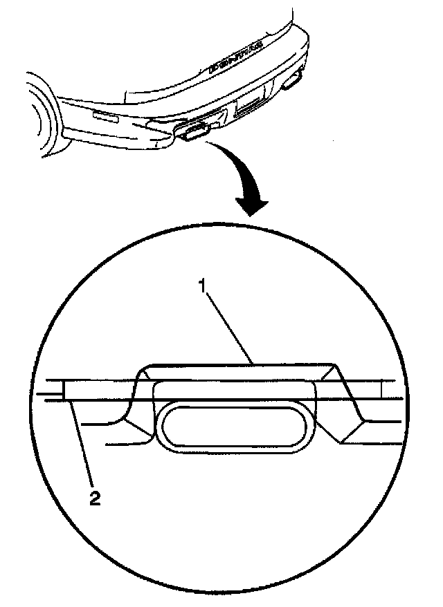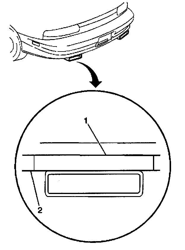 Measure the clearance from the rear fascia (1) to the top of tailpipe (2).