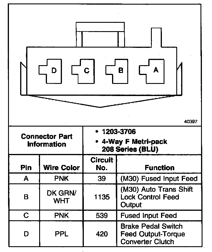 Stop Lamp/TCC Switch Connector C2