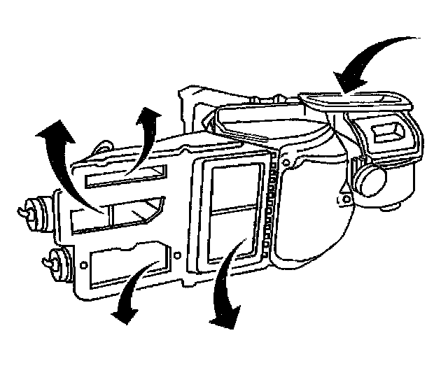 . Outside air is drawn in and heated (depending on the position of the temperature control knob). Then the airflow is split between the IP outlets and the floor outlet.